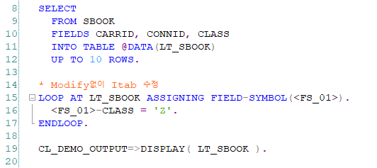 Field-Symbol을 활용하여 modify를 생략하고 테이블 데이터를 직접 변경하는 구문을 리뷰하겠습니다.