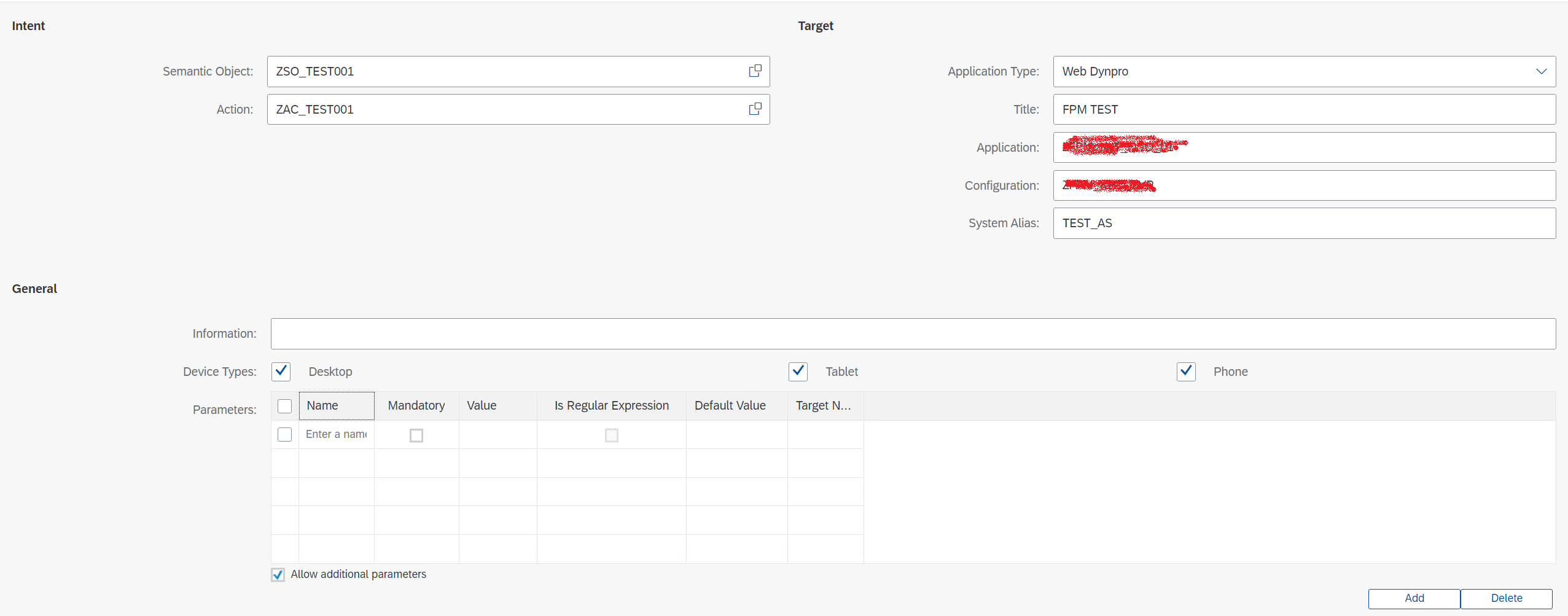 Applicaion은 만들어놓은 FPM 프로그램의 어플리케이션 이름(SE80에서 확인)을 적어줍니다.