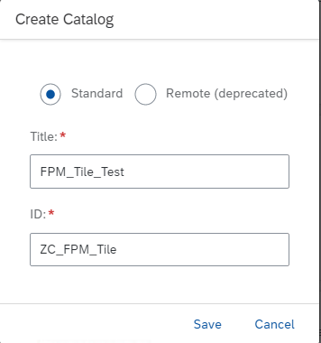 생성할 카탈로그의 ID와 Title을 적고 Save를 누르면 카탈로그가 생성됩니다.