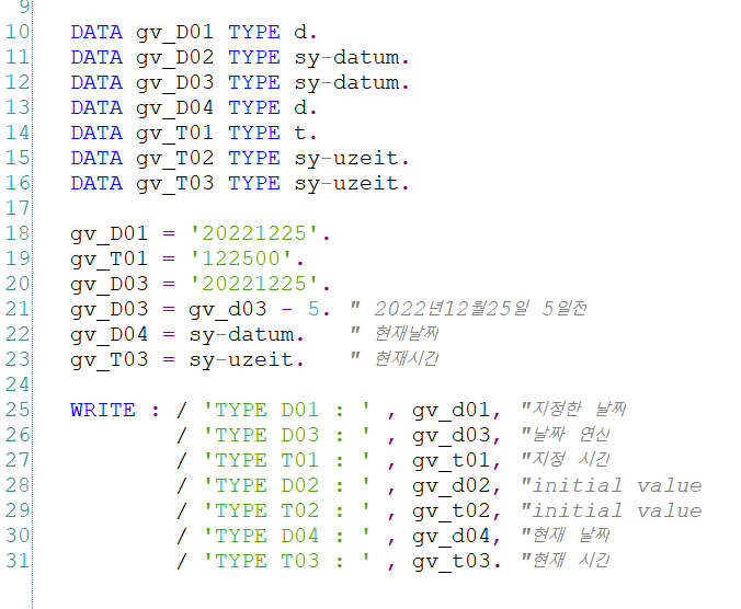 ABAP에서는 변수(데이터를 담는 공간)를 선언할 때 데이터의 타입도 같이 지정해줍니다.