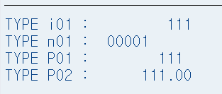 p type 은 파켓 타입으로 소수점을 사용할 때 사용하며 선언 시 TYPE 뒤에 DECIMALS(소수점 자리 지정)를 사용하여 소수점을 가진 숫자를 표현한다.