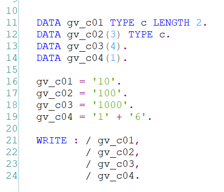 C Type 은 Text 타입으로 ' ' 즉, SPACE의 INITIAL VALUE를 가지고 있으며, LENGHT를 통해 변수의 길이를 지정해줘야 한다.