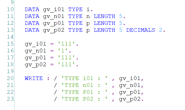 p type 은 파켓 타입으로 소수점을 사용할 때 사용하며 선언 시 TYPE 뒤에 DECIMALS(소수점 자리 지정)를 사용하여 소수점을 가진 숫자를 표현한다.