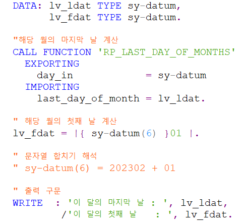 ( sy-datum 을 입력하면 프로그램 실행날짜에 맞는 마지막 날짜를 구할 수 있다. )