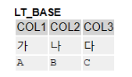 1) lt_base에는 가, 나, 다, A, B, C라는 데이터를 입력했고