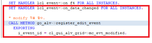 또한, ALV에서 데이터를 변경하는 경우에는 register_edit_event 메소드를 호출해서 사용해야한다.