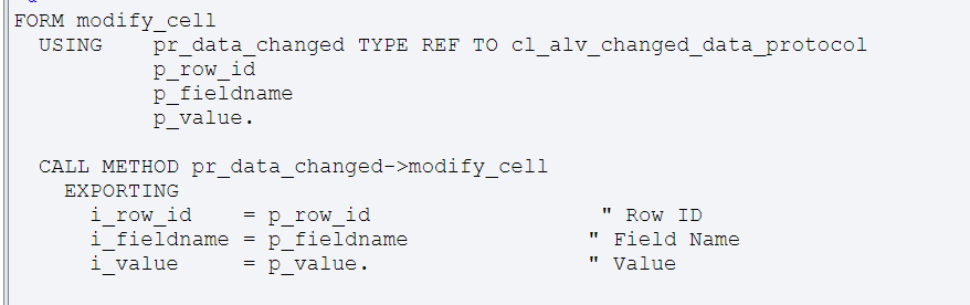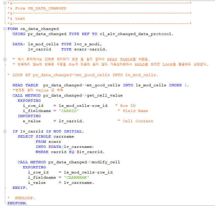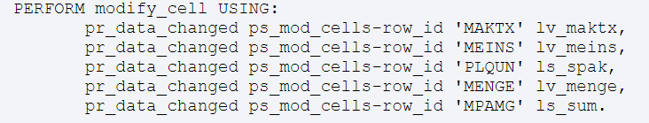 만약, 한번에 Data changed 로 여러개의 필드 값을 바꾸고 싶을때는 Perform 안에 USING을 동적을 설정하여 modify_cell을 설정 할 수 있다.