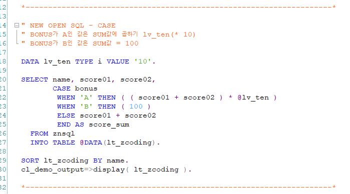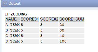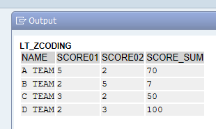 그럼 SELECT CASE 문을 활용하여 ITAB에 해당 데이터와 SCORE_SUM 필드를 채워보겠습니다.